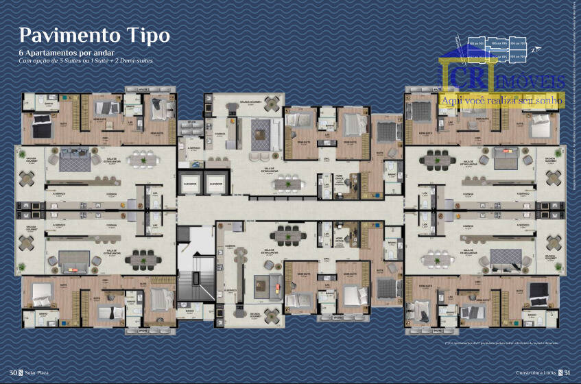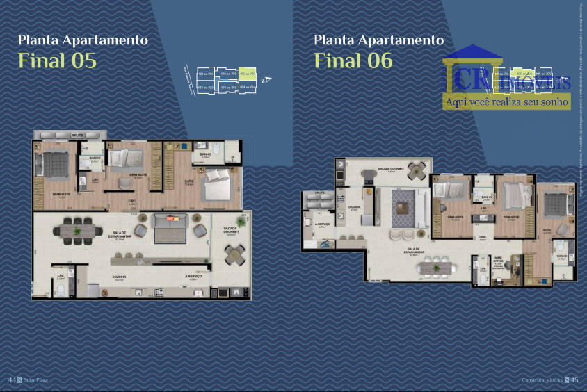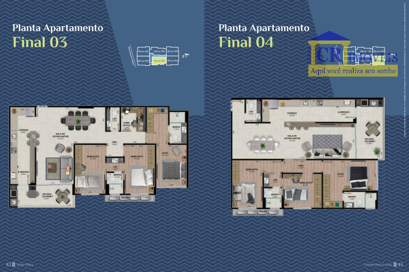 Apartamentos de 3 quartos com até 125 m², suíte, demi-suíte, home office, hobby box e 2 vagas de garagem. Acabamentos modernos como piso vinílico, persianas automatizadas, espera para automação e split, além de depósito privativo e medidores individuais.